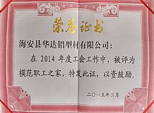 海安縣華達鋁型材有限公司是專業生產鋁材陽極氧化、超長陽極氧化、鋁合金陽極氧化、大結構件陽極氧化等多種鋁合金型材及制品的企業。以質量求生存,以創新求發展是企業宗旨。